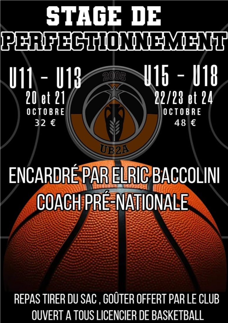 L'UB2A renouvelle l'expérience et vous propose un stage de perfectionnement pendant les vacances de la Toussaint.